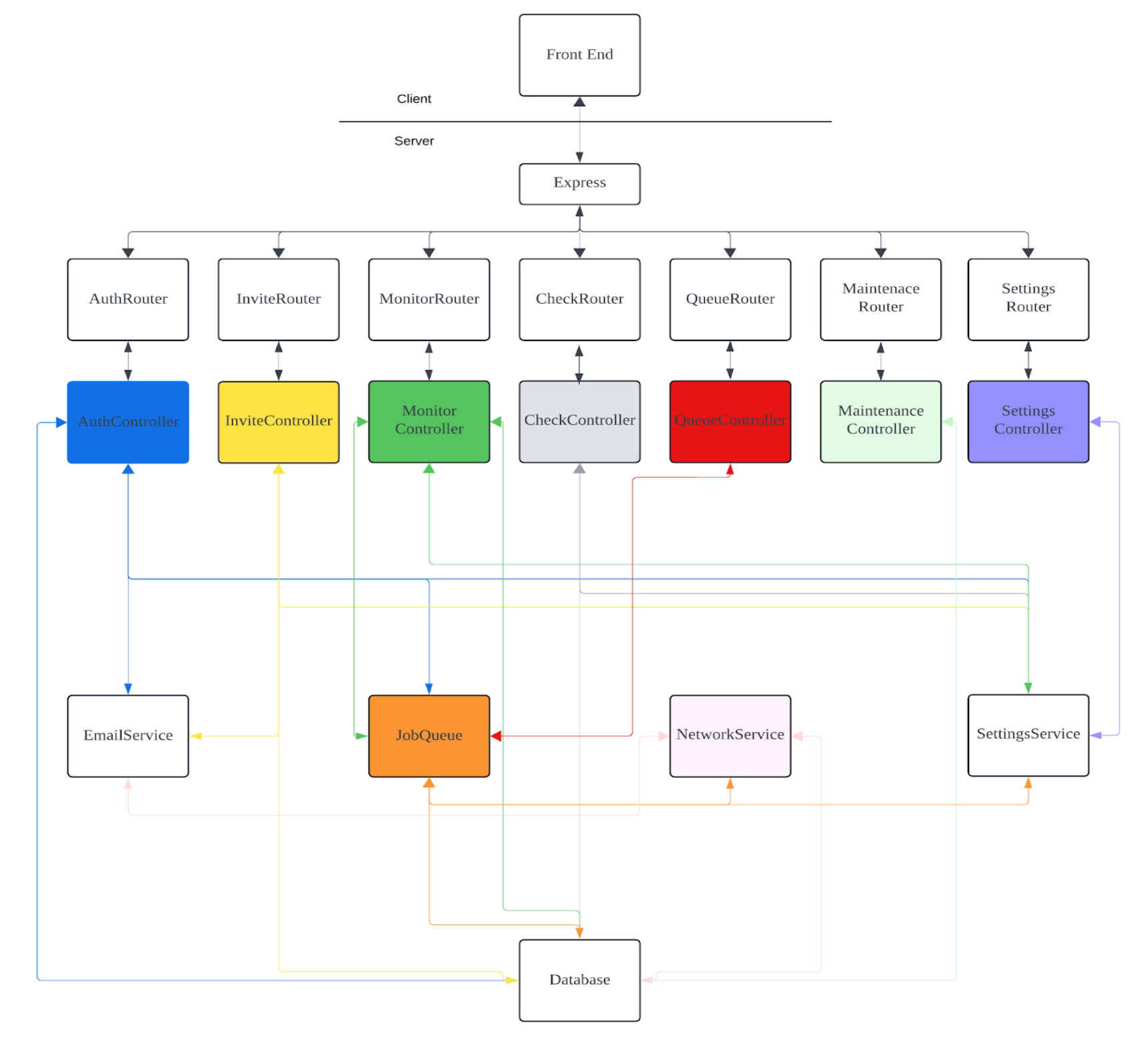 The heart of this application is a JobQueue class that wraps a BullMQ Queue.