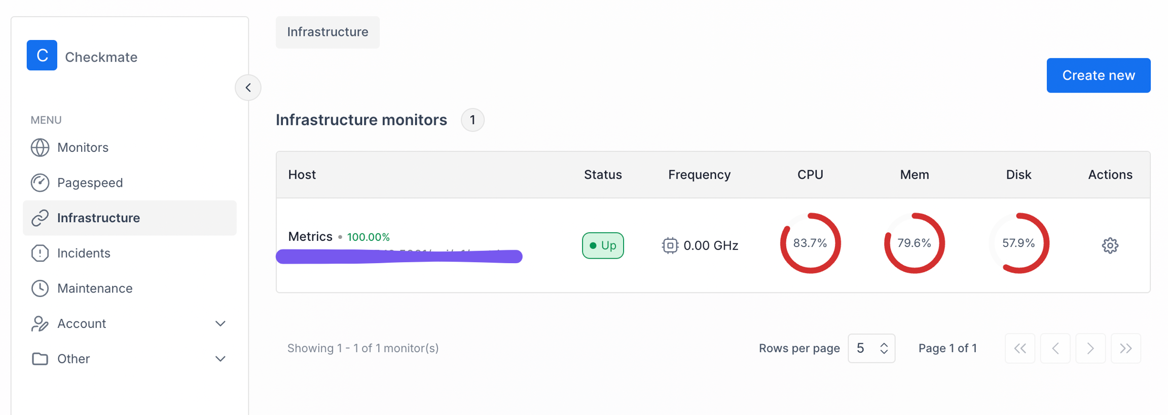 Navigate to the Infrastructure section in Checkmate and click the Create button to access the setup form for creating a new infrastructure monitor.